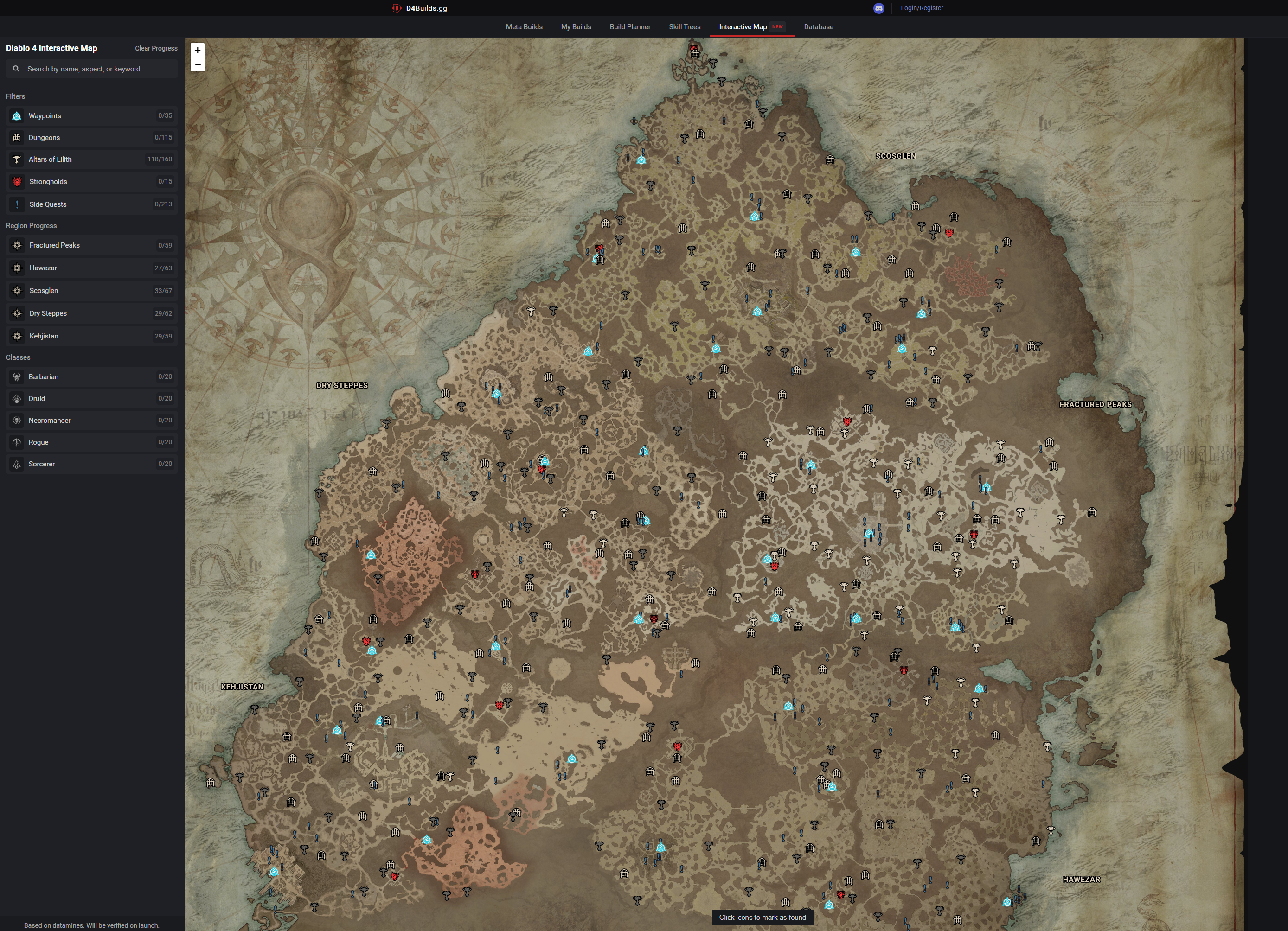 스킬 & 파라곤 빌드 외에도 릴리스 동상의 위치 퀘스트 위치 같은 것들을 알려 주는데 퀘스트의 경우 한번 놓치게 되면 찾기 힘든 경우가 있어서 지도는 릴리스 석상 위치 찾기 외에는 따로 쓸 필요가 없었던 거 같습니다.