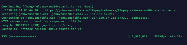 다운로드가 완료된 후 cd ./ffmpeg-install 로 이동 후 /usr/bin 으로 복사해 주도록 합니다.
