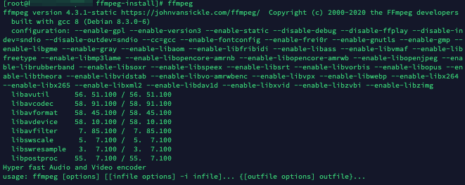 $ cp -rf ./ffmpeg-install /usr/bin/