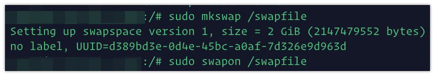 $ sudo swapon /swapfile