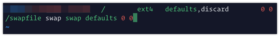 /swapfile swap swap defaults 0 0