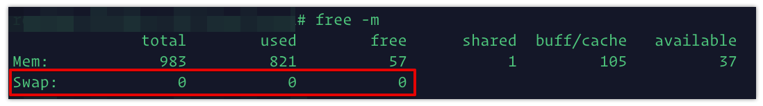 우선 정말 스왑 메모리가 없는지 free -m 을 통해 확인해 보도록 합니다.