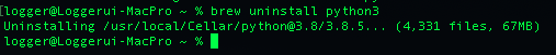 $ brew uninstall python3