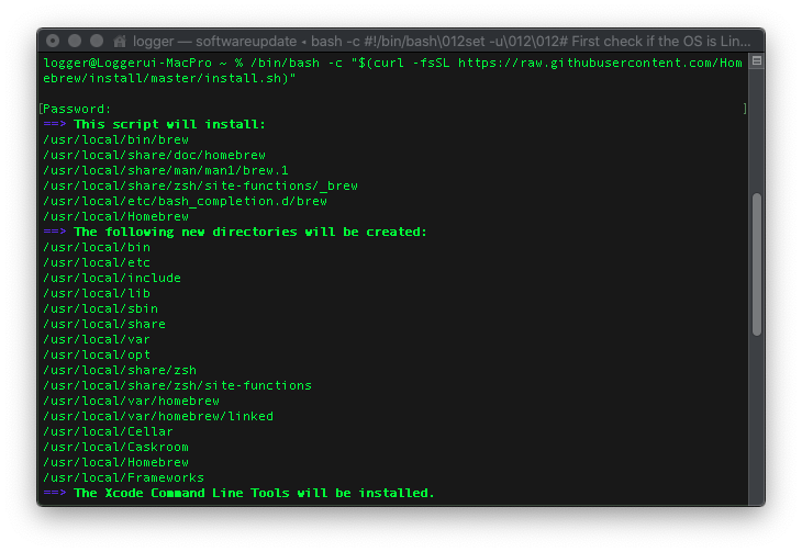 $ /bin/bash -c "$(curl -fsSL https://raw.githubusercontent.com/Homebrew/install/master/install.sh)"