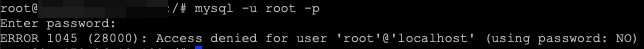 이제 exit 로 접속을 끊어 주시고 mysql -u root -p 를 하시고 비밀번호를 입력하지 않으시면 접속이 되지 않는 것을 확인하실 수 있습니다.