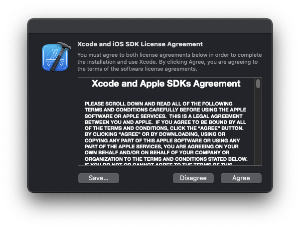 sudo xcodebuild -license accept