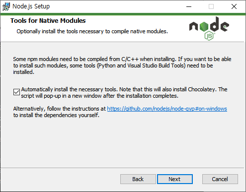 Windows에서는 간단히 NodeJS 홈페이지에서 NodeJS를 다운로드하여 일반 애플리케이션을 설치하듯 설치해 주시면 됩니다.