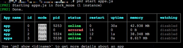 $ pm2 restart <app_name|id|'all'|json_conf>