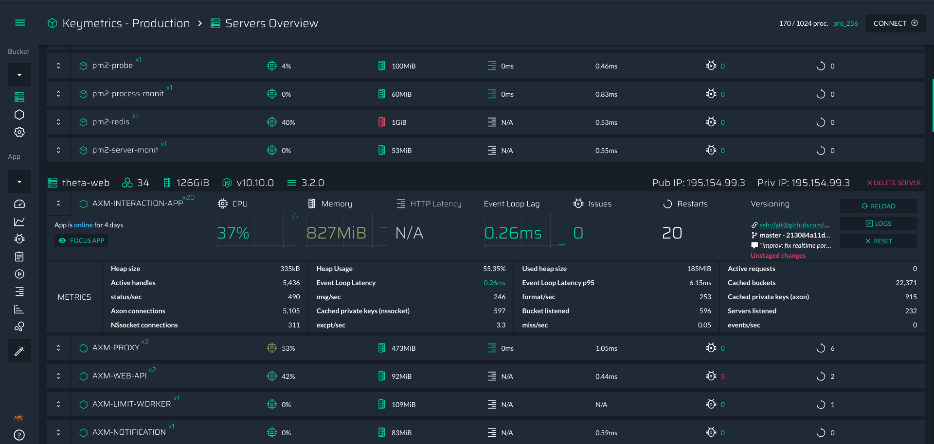 추가적으로 pm2 에서 자체적으로 웹 gui 형식으로 모니터링을 제공하고 있습니다. 관심 있으신분은 아래의 URL 을 참고 하시면 될 것 같습니다.