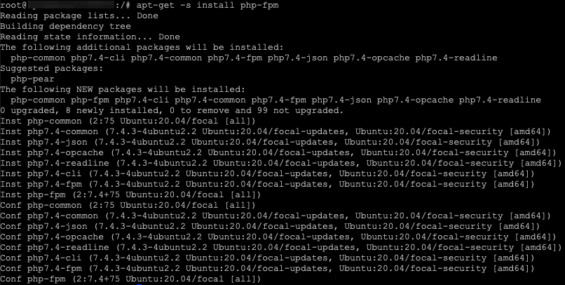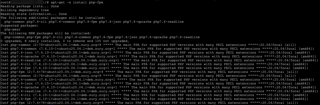 업데이트 후 이제 다시 apt-get -s install php-fpm을 해보시면 설치정보가 변경 된것 을 확인 하실 수 있습니다.