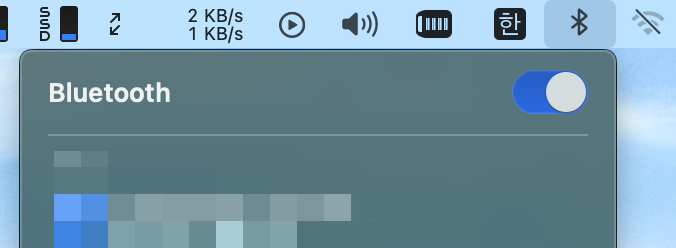 * Bluetooth (블루투스) 메뉴바에서 스위치를 껐다가 올리시거나